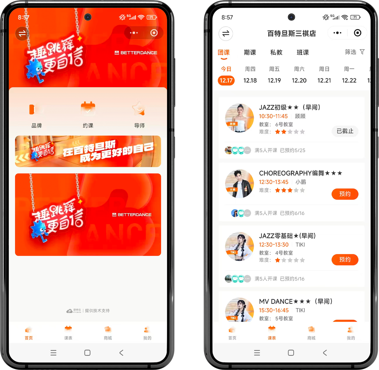 专业体验的升级,更离不开菲特云舞蹈管理系统的赋能。自2019年与菲特云达成深度合作以来,百特旦斯正式迈入智能化管理新纪元,让服务品质与运营效率实现双重飞跃。对学员而言,街舞学习的全流程体验被全面优化:无需线下奔波,微信小程序即可一键直达——实时更新的课表清晰标注课程类型、授课老师及剩余名额,Breaking、Jazz等不同舞种的课程精准分类,方便学员按需筛选预约;若临时有变动,线上改签功能轻松解决后顾之忧,彻底告别课时浪费或名额争抢的困扰。课后,学员还能通过系统专属通道提交学习反馈,无论是对舞蹈动作拆解的建议,还是对课程节奏的调整需求,都能快速触达授课团队,老师会结合反馈针对性优化教学方案,比如针对少儿学员调整基础动作的讲解时长,为成人进阶学员增加技巧强化环节,让教学更贴合个性化需求。