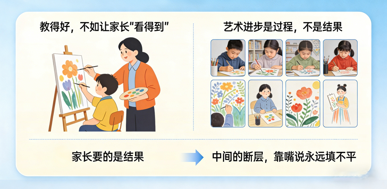 艺术进步是过程,不是结果。但家长要的是结果。中间的断层,靠嘴说永远填不平。